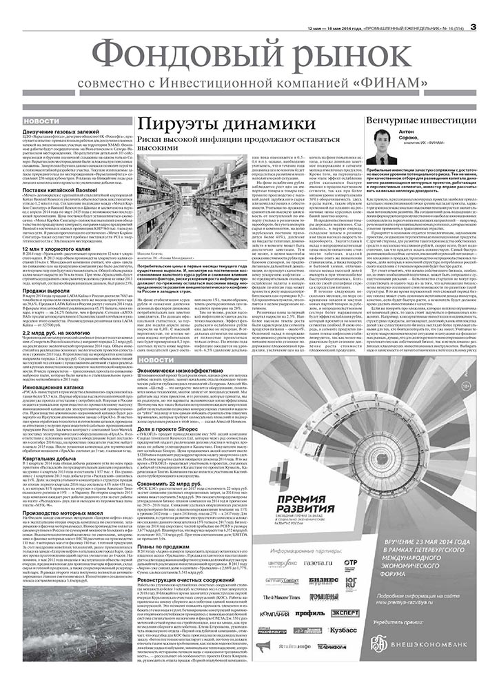 «Промышленный еженедельник»Выпуск: №16 Дата: 12-18 мая 2014 г. Газета о промышленности, газета для промышленников |